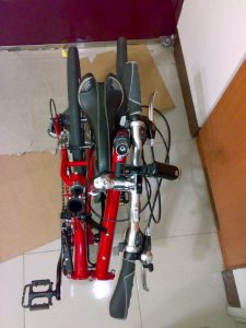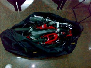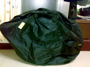 經過不斷的折來折去 終於把小紅塞進攜車袋了 還好體積不是很大 但是很重Orz...