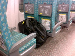 放上了高鐵的座位 小折果然輕巧 不是很佔位置 就算放在腳邊 也不會覺得很擠
