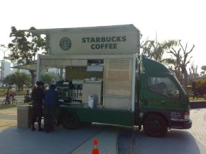 旁邊還有Starbucks的行動咖啡車 小小整備一下 大夥們準備繼續往前騎囉~