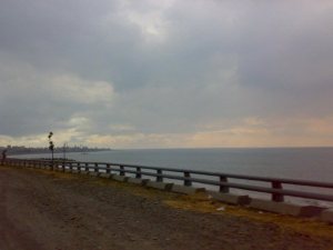終於看到海岸了 不過天氣慢慢變的有點陰暗了~