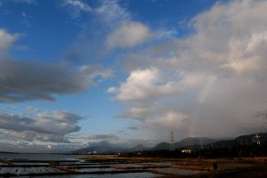 國境之南的彩虹 慢慢的下起雨來了 對於長途騎車的車友們真的是很大的挑戰 不時看到"掛"在路邊的車友們