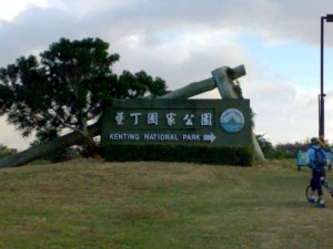 終於到了墾丁國家公園的入口 一定要跟扛棒拍一下的啦 顧不得時間快要來不及了 快拍!
