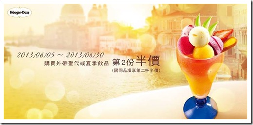 Häagen-Dazs 今夏精選飲品優惠!到6/30止,凡於Häagen-Dazs門市購買外帶聖代或夏季飲品,第2杯半價!享受頂級冰淇淋飲品就趁現在!